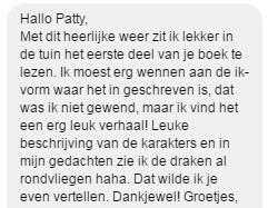 Als schrijfster vind ik berichtjes krijgen van lezers één van de leukste en gaafste dingen van het vak. 🙂
