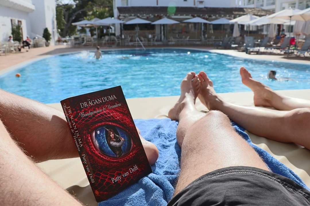 Of foto’s van wat mijn boeken allemaal meemaken, zoals meegaan op vakantie: