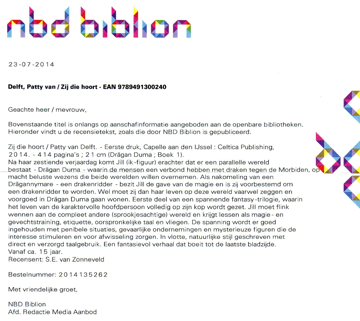 Ook de recensie van Biblion was goed! En dat is belangrijk, heb ik inmiddels geleerd, want aan de hand van die recensie wordt het boek aangeschaft door de Nederlandse bibliotheken en het is ook de recensie die bij het boek bovenaan wordt geplaatst bij Bol.