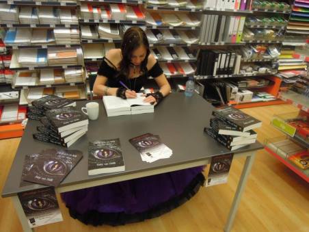 2014 werd een jaar van heel veel “eerste keren”: Mijn debuutboek, een boekpresentatie, de eerste keer dat ik als schrijfster op een fantasy-evenement mocht staan, boeken signeren, met angst en beven de eerste recensies afwachten, een award winnen, de eerste keer met lezers op de foto… Ik vond het geweldig, doodeng en de meeste dingen had ik nooit zien aankomen… (heb je deel 1 gemist? Lees het HIER)
