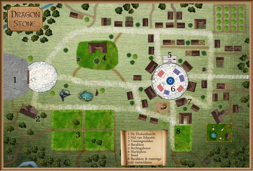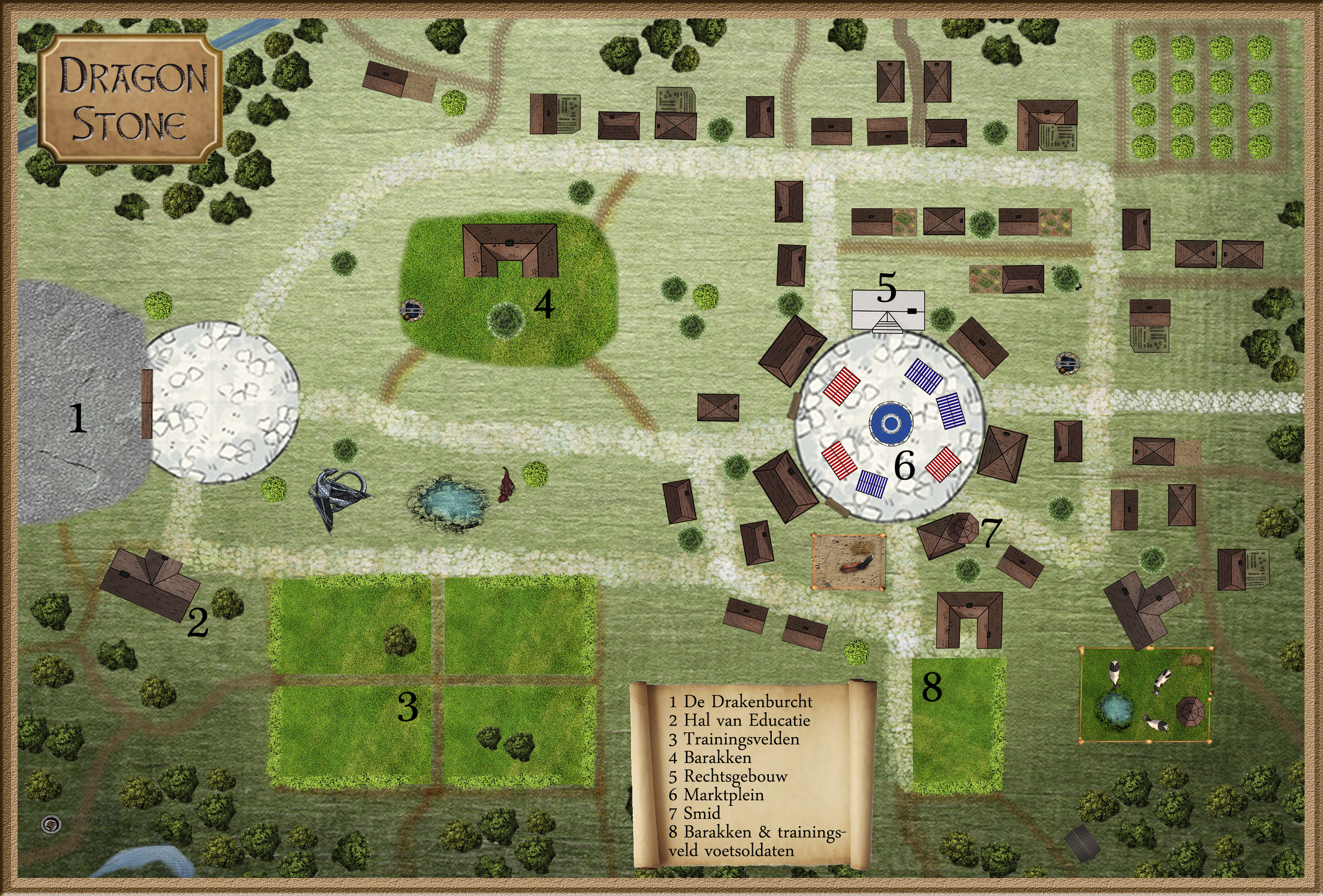 Voor iedereen die graag eens wil zien hoe Dragon Stone, het dorp waar het verhaal zich grotendeels afspeelt, ingedeeld is; de plattegrond!