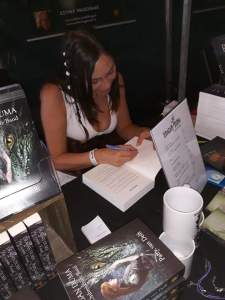 Al een aantal jaar voordat ik schrijfster werd ging ik met veel plezier naar Castlefest, een jaarlijks fantasy festival in Lisse. Ik vind het heerlijk om daar rond te struinen, kraampjes te bekijken (en leeg te kopen) en muziek te beluisteren. In 2013 liep ik met mijn oudste zus over de schrijversmarkt (we wisten toen al dat Zij Die Hoort uitgegeven zou worden) en mijn zus zei: ‘Volgend jaar sta jij hier ook als auteur!’ Op dat moment verklaarde ik haar voor gek want de schrijvers die daar stonden hadden het in mijn ogen al helemaal gemaakt. Ik bedoel, ze stonden daar met hun boeken op een schitterend festival echt schrijver te wezen! Ze signeerde boeken, lazen voor uit hun werk en gingen op de foto’s met lezers. Daar zag ik mezelf dus echt nog niet tussen staan…