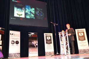 De opzet was erg leuk; in een grote zaal met genomineerden en publiek werd er op een groot scherm boven een podium afgeteld naar de drie beste boeken. Mijn mond viel open toen de cover van Zij Die Hoort samen met twee andere boeken overbleef. Mijn man Danny riep tegen mij: ‘Je moet naar voren, het podium op!’ Ik schudde van “nee” en drukte me nog wat verder achterover in mijn stoel. Het podium op? Voor al die mensen? Mij niet gezien! Ik ben absoluut geen podiumbeest. Uiteindelijk, na wat zachte dwang van Danny, liep ik toch maar met knikkende knietjes naar de aangewezen plek op het podium. Daar kreeg ik een prachtig award voor de derde plaats in de categorie “Beste Fantasy boek van Nederland en Vlaanderen” terwijl collega’s Evi F. Verhasselt en Femke de Vos de negende en vierde plaats in de wacht sleepten. Nog een belevenis die ik nooit meer vergeet!