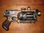 In de meeste fantasy verhalen, en Steampunk is daar geen uitzondering in, is er een of andere strijd aan de gang. Bij een strijd horen natuurlijk wapens, fysiek of magisch, en ook daarmee kun je binnen dit genre heel veel kanten op. Zwaarden, bijlen, bogen, pistolen, het mag allemaal. Wel zijn deze dan vaak aangepast met technische snufjes om ze meer “Steampunk” te maken of werken ze net even anders dan ze normaal zouden doen.